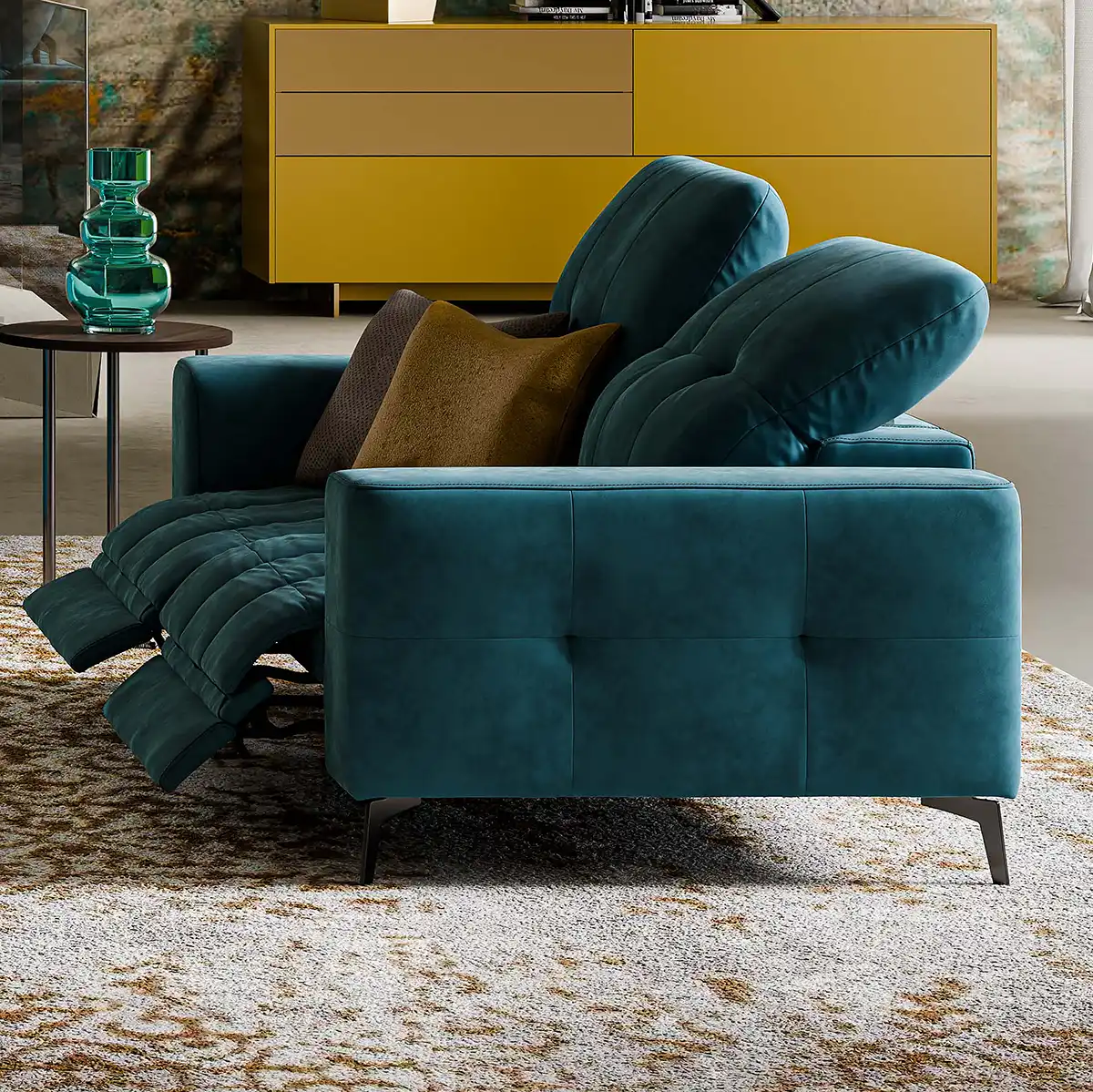 Divano elegante e tecnologico, con sedute motorizzate indipendenti, trapuntatura curata e poggiatesta regolabili. Un modello progettato per chi è sempre in cerca del vero, totale relax.